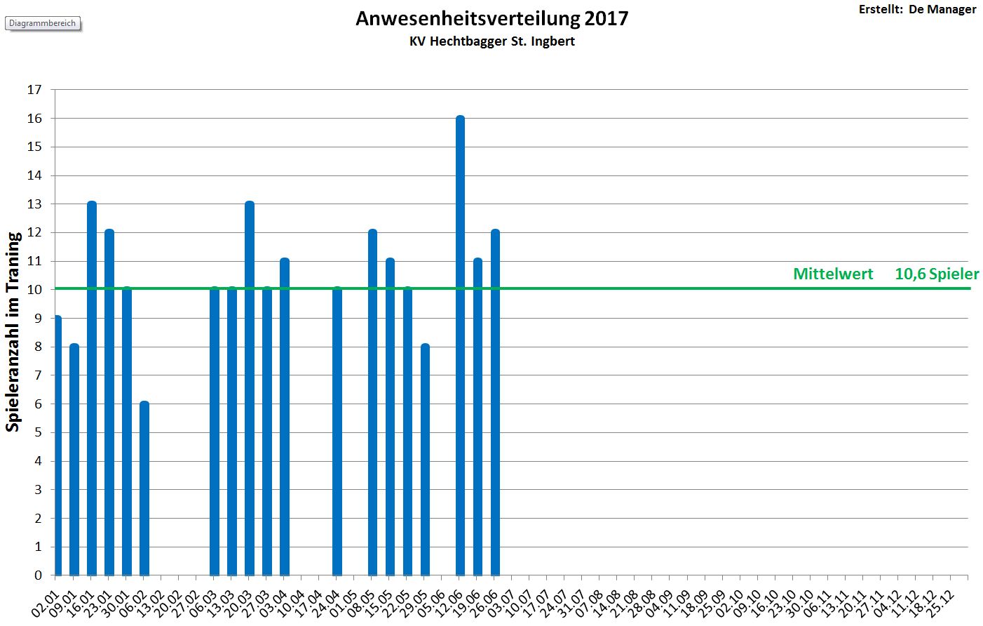 War sie im letzten Jahr noch im Mittel bei 8,9 Spieler pro Training, ist sie in der ersten Jahreshälfte 2017 schon auf 10,6 geklettert.